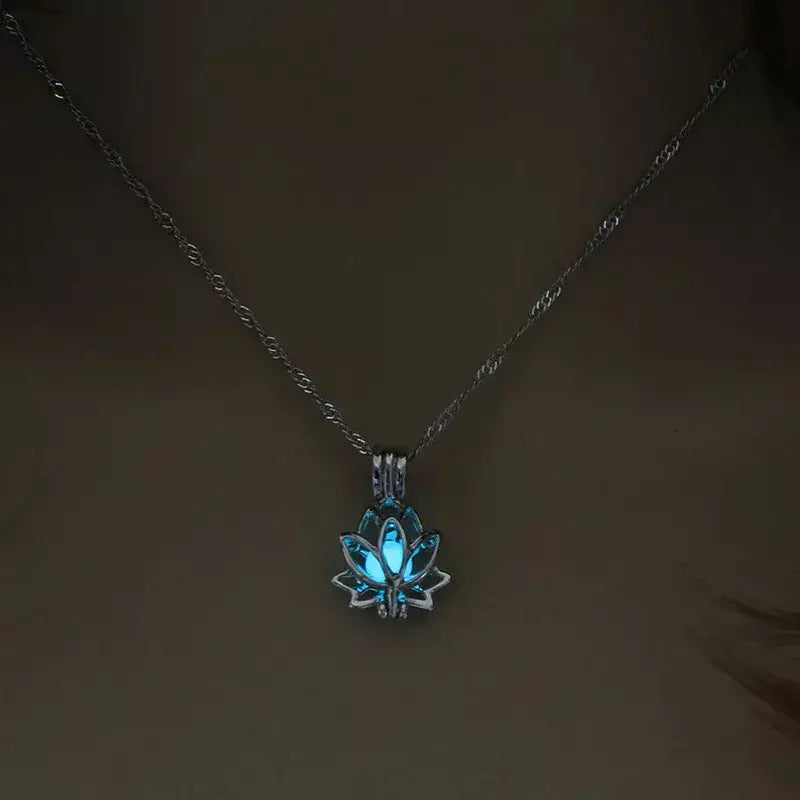 Encante-se com a beleza e a criatividade do Colar Flor de Lótus Luminosa! Com uma elegante flor de lótus oca e miçangas que brilham no escuro, ele é perfeito para quem busca estilo e personalidade.