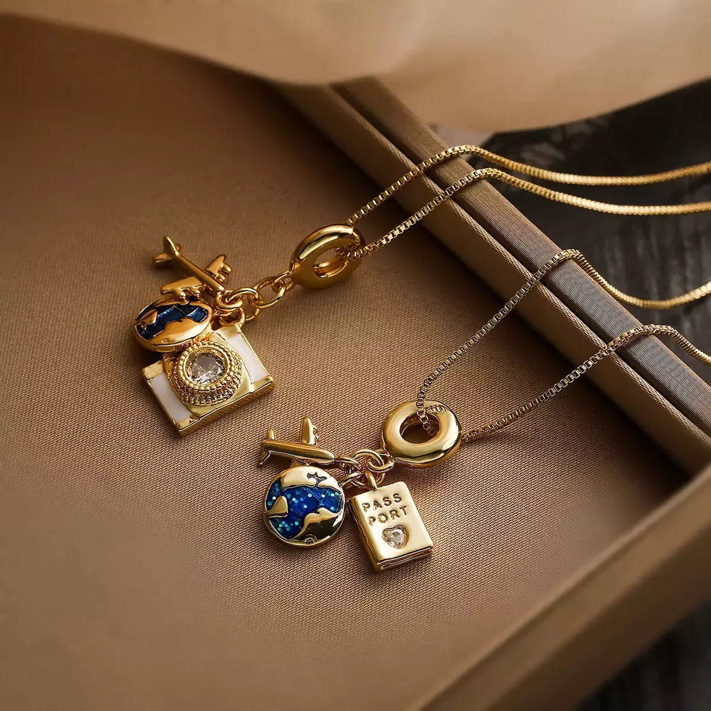 Imagine carregar consigo um lembrete constante de suas viagens e sonhos. Este colar não é apenas um acessório, mas uma peça que conecta você aos lugares que deseja conhecer e às histórias que ainda vai contar.