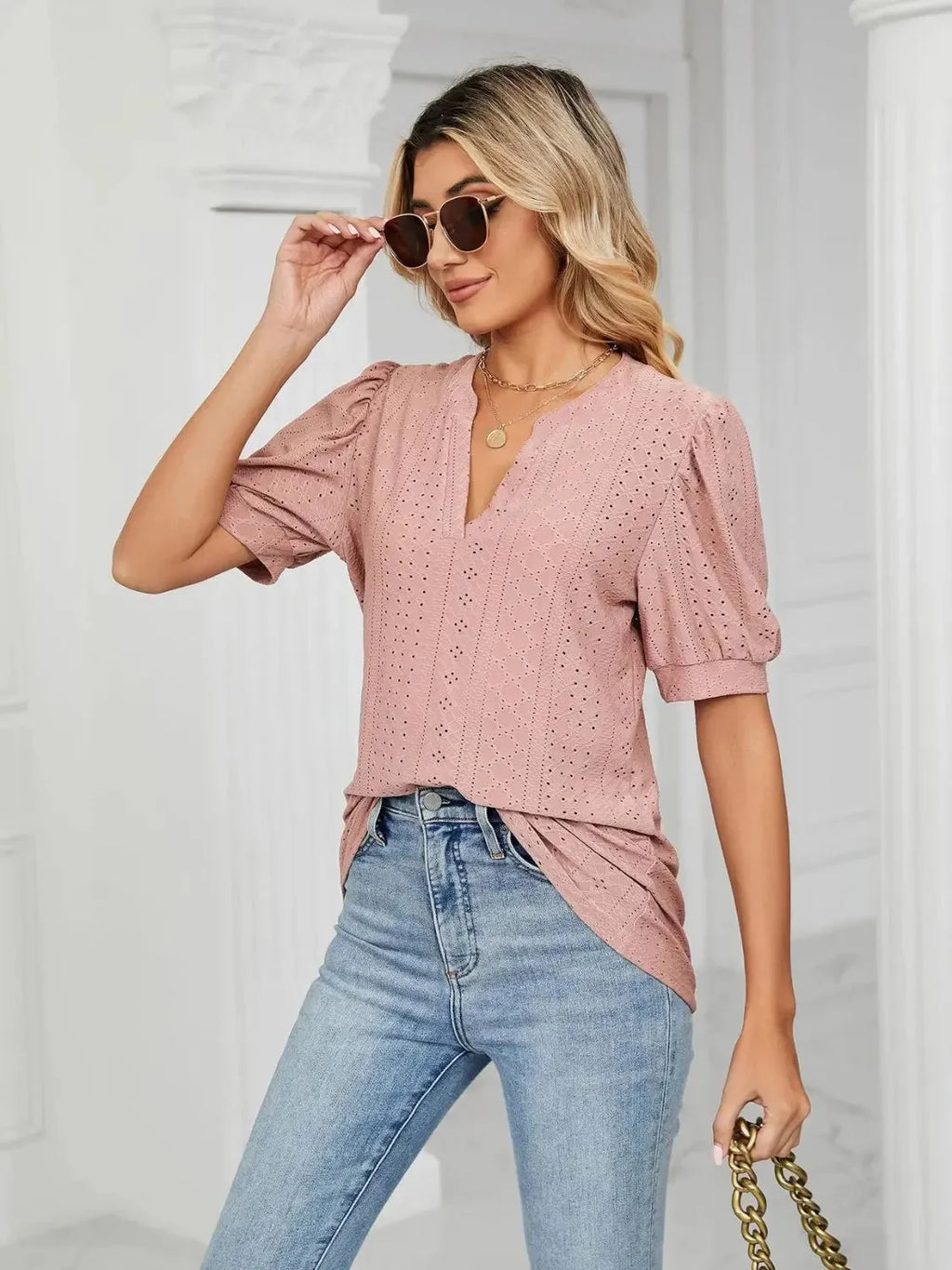 Introduza um toque de elegância e estilo ao seu guarda-roupa com a Blusa Andreza. Esta blusa apresenta detalhes vazados que adicionam um toque de charme único. Com uma leve elasticidade, ela oferece conforto e liberdade de movimento. As mangas bufantes e curtas são uma declaração de moda, enquanto o decote em V valoriza o pescoço e o colarinho. O ajuste regulado proporciona o equilíbrio perfeito entre estilo e conforto, tornando a Blusa Andreza uma escolha versátil para mulheres que desejam se destacar com sofisticação em qualquer ocasião.