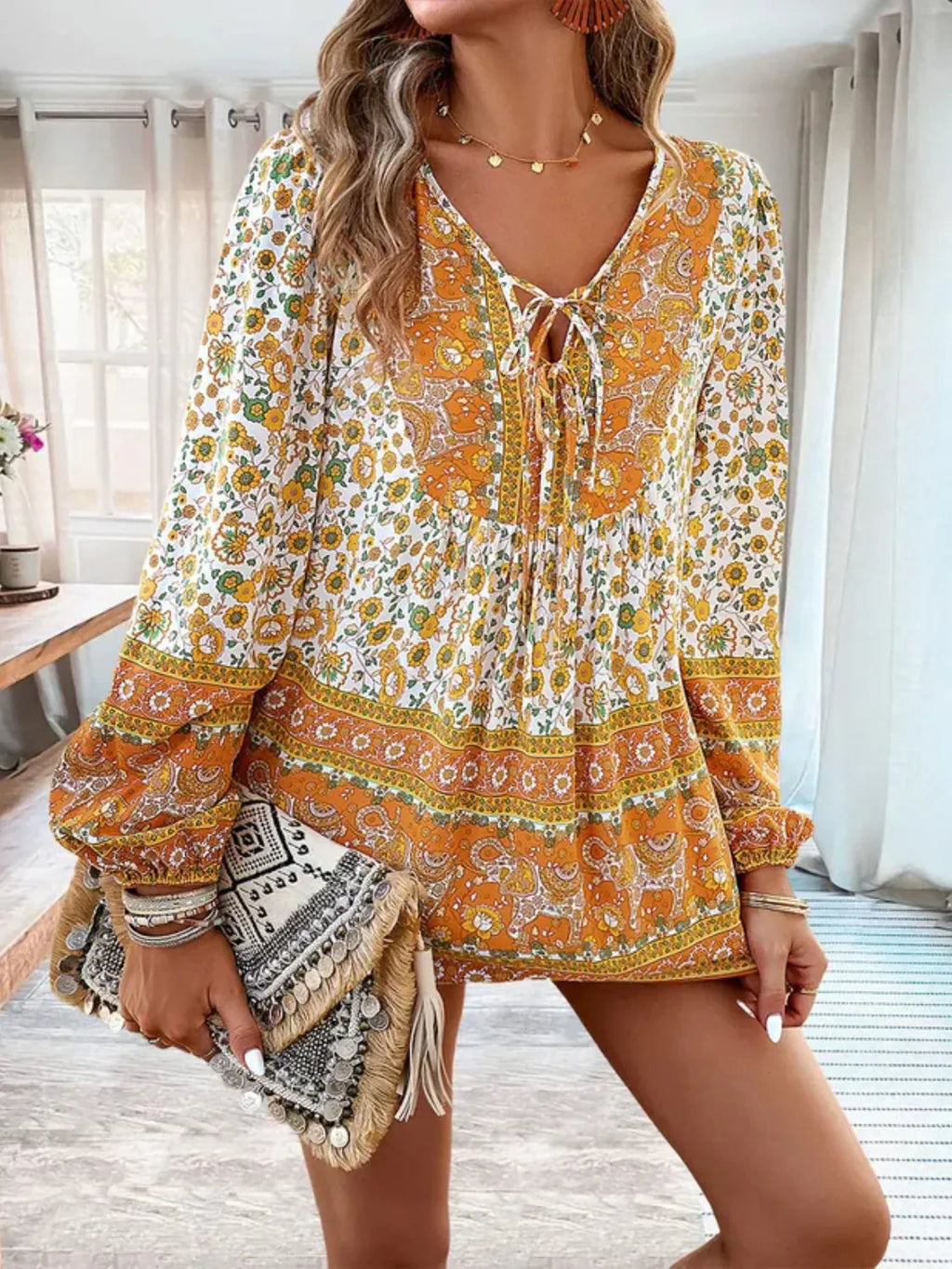 Descubra a sofisticação e o conforto da Blusa Flora, uma peça perfeita para mulheres que valorizam um estilo casual e elegante. O decote em V adiciona um toque de feminilidade, enquanto o comprimento longo traz uma sensação de elegância. Com um padrão de impressão slim, é ideal para ocasiões casuais e versáteis. As mangas completas acrescentam um toque final de sofisticação.