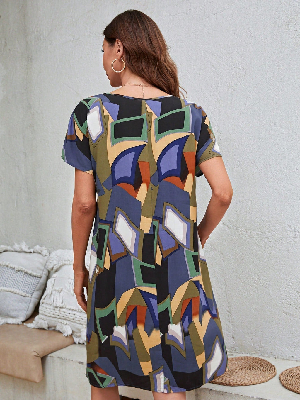 O Vestido Dafne oferece uma abordagem casual com estampa geométrica, proporcionando um visual descontraído e moderno. Seus detalhes incluem bolsos práticos, gola em decote V e mangas curtas em estilo morcego. Com linha da cintura natural e caimento solto, este vestido tipo túnica atinge o comprimento de joelho, oferecendo conforto e elegância para diversas ocasiões. Adicione um toque de estilo fácil e contemporâneo ao seu guarda-roupa com o Vestido Dafne.