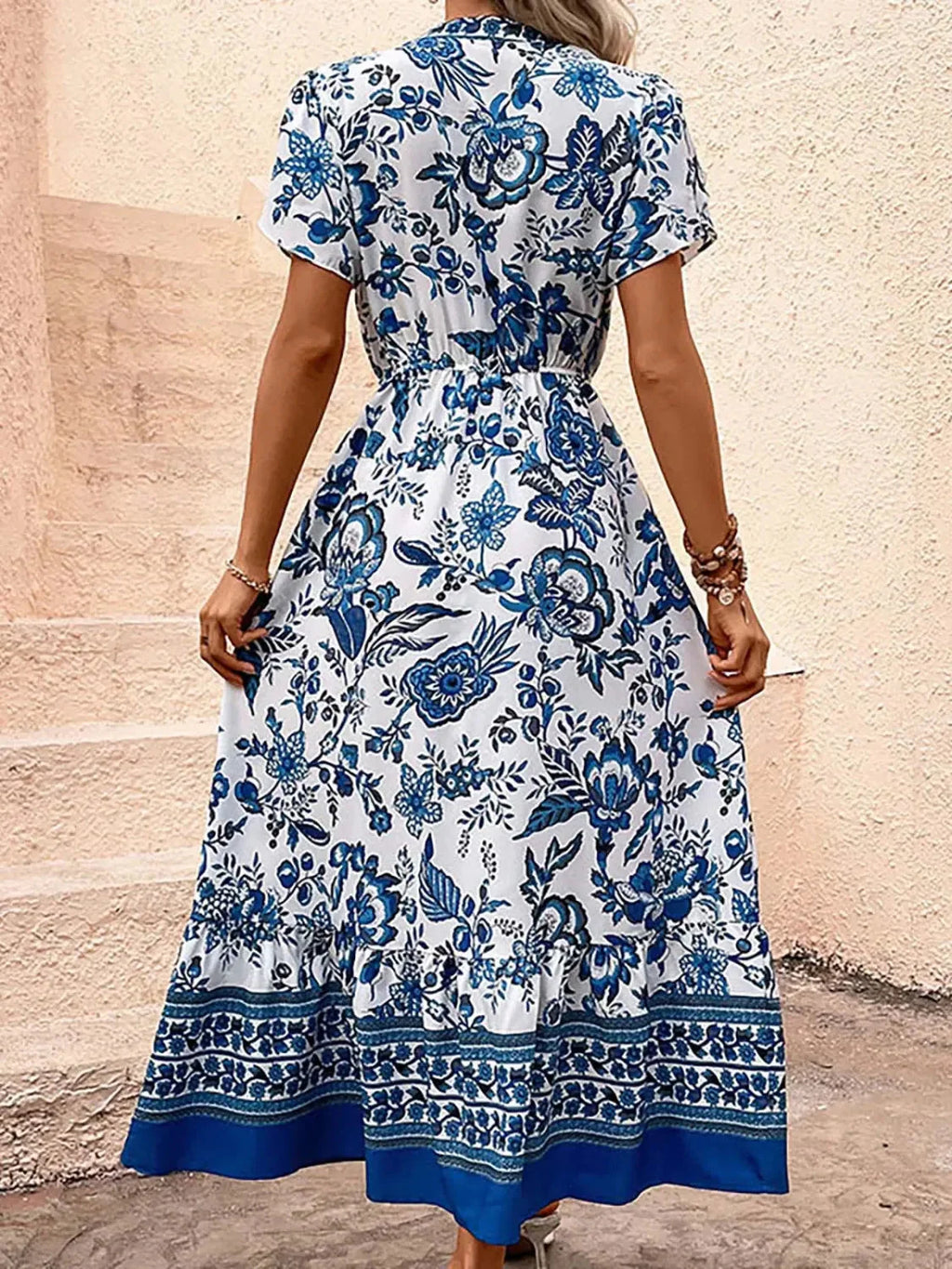 O Vestido Delilah é a personificação do estilo boêmio-chique, perfeito para mulheres que desejam uma peça versátil e elegante. Com sua leve elasticidade, este vestido se adapta suavemente ao corpo, proporcionando conforto incomparável. O padrão floral adiciona um toque romântico, enquanto o decote em V e a cintura império destacam a feminilidade e valorizam a silhueta. Decorado com detalhes em renda, este vestido emana uma sensação de delicadeza e sofisticação. O comprimento midi e as mangas curtas conferem uma aparência moderna e refinada. Vestido Delilah é uma escolha irresistível para qualquer mulher que deseje destacar sua beleza natural com estilo e graciosidade.