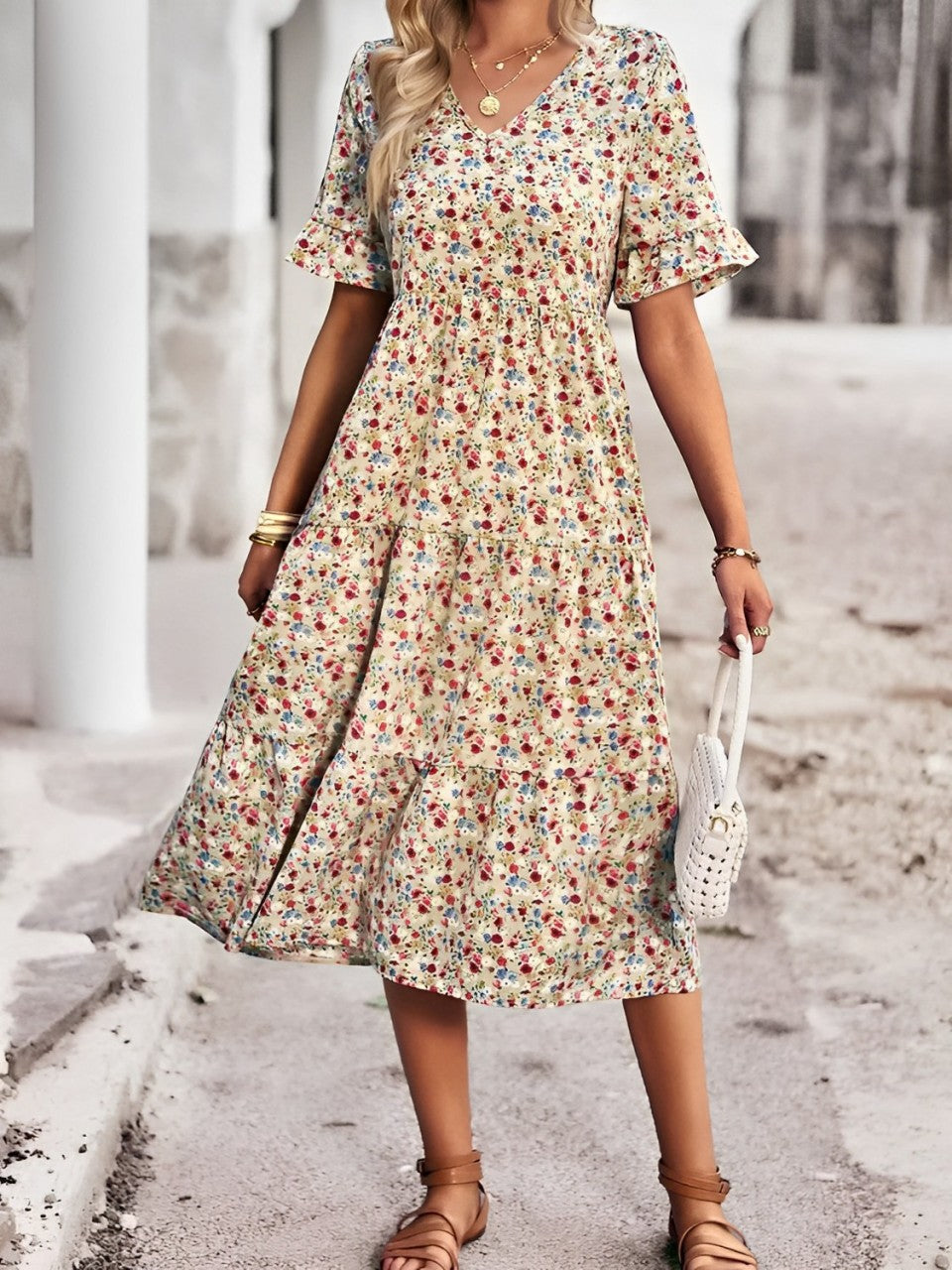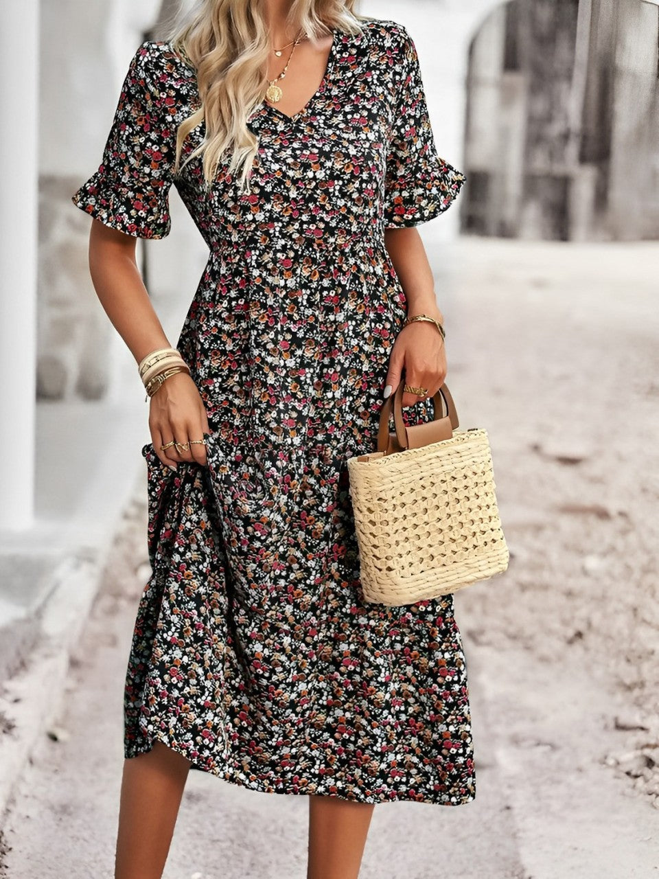 Elegância atemporal encontra conforto moderno com o Vestido Regina. Com um decote em V gracioso e uma cintura império que define a silhueta de forma encantadora, este vestido combina sofisticação e estilo em uma peça única. O detalhe do manga borboleta adiciona um toque de delicadeza, enquanto o comprimento até a metade da panturrilha oferece um visual elegante e versátil. Feito com leve elasticidade para um ajuste confortável, o Vestido Regina é perfeito para mulheres que valorizam tanto o estilo quanto o conforto.